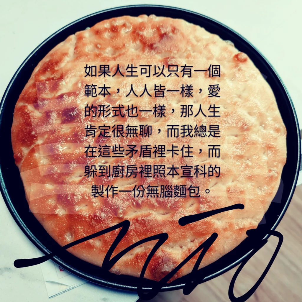 「人類最大的罪惡皆來自愛之名。」-達文西密碼於是我躲到廚房裡製作一份無腦麵包試著讓大腦冷卻。低溫發酵12小時的佛卡夏簡單又方便,酥脆又柔軟。