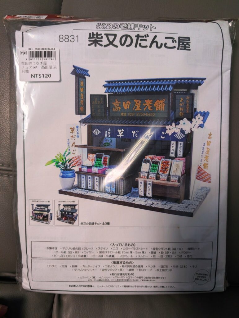 「剛考完試什麼都無法想,而且接著的考試行程都很緊湊,又強迫症一天想組好。」「下次,再買一盒一天可以組好的模型給妳。」喜歡逛日系二手店的他,撿到了一盒全新的日式袖珍屋,剛考取新證照後只想放空便拆來玩。做了一整天的零件,裁切貼黏一堆小物件,還有一堆屋頂跟糰子要組合跟上色,真是太累人了這玩意。看了看附贈的DM好像很適合再買一些回來把一些人偶擺進去。#袖珍屋 #ミニチュアキット #柴又の老舗キット #柴又のだんご屋