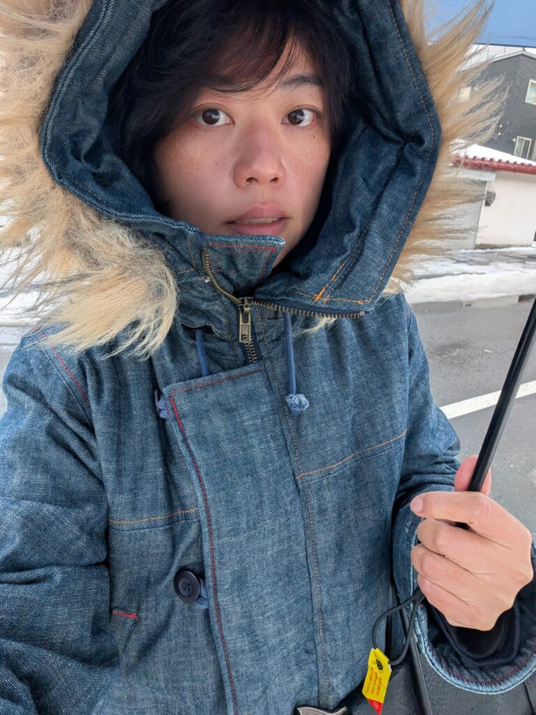 看著自己因為太寒冷而凍紅的臉,看著外套,看著一切,全壓下來藏起來的一切都一覽無遺。