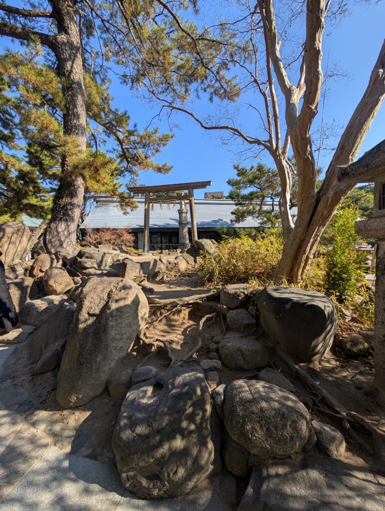 像他描繪藏在森林深處裡一樣的神社群們,大大小小的座落在整個園內,剛好遇到幫孩子祈福的季節吧,小男孩穿著袴,小女孩穿著振袖,踩著小小的雪䭾在石頭上奔跑,一下舔著手裡拿的糖果問著媽媽那是什麼,一下一副大人模樣擺出最帥姿勢留下一張紀念。