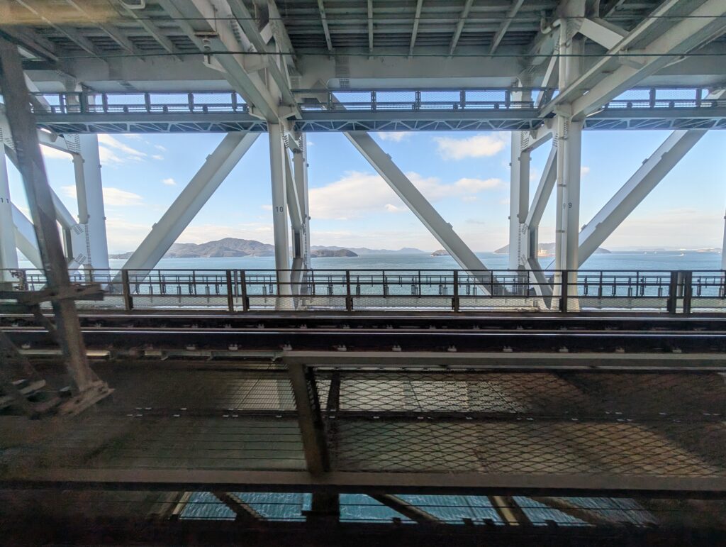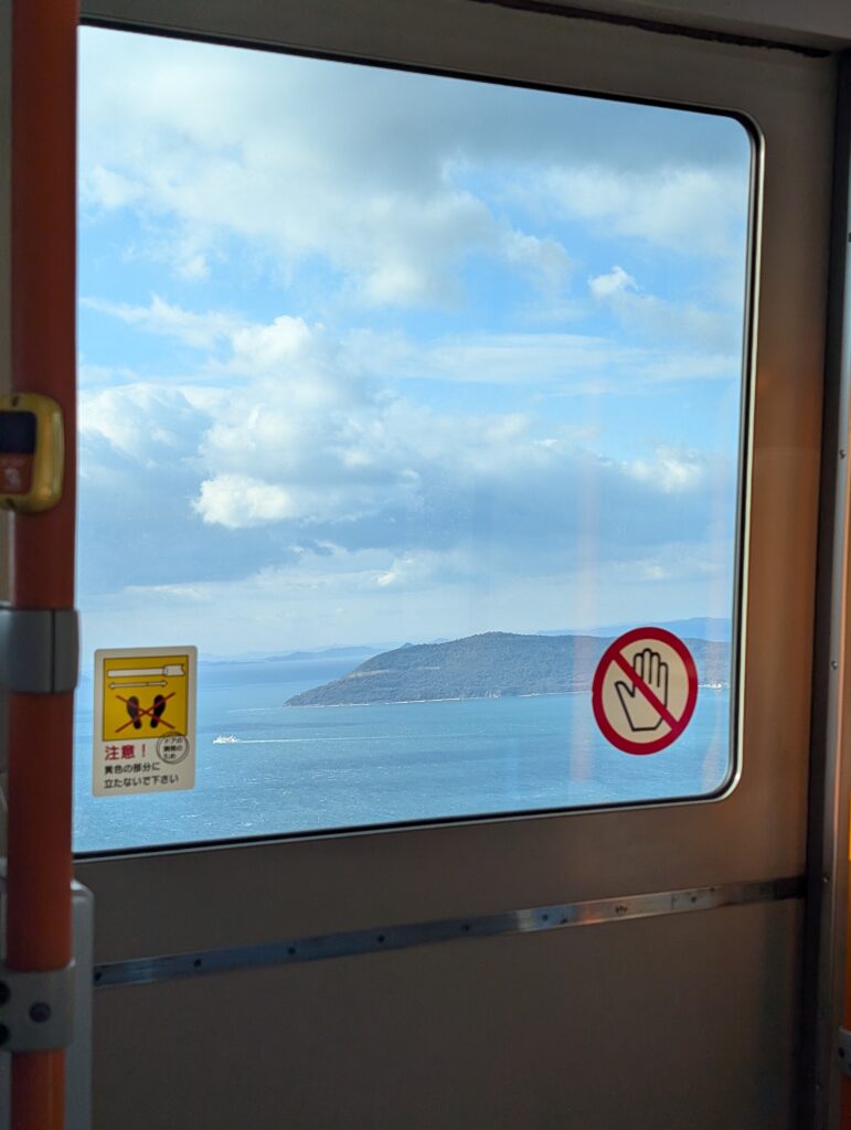 經過兩小站之後就是跨海大橋,沿路可以看到窗外被大大小小的島嶼包圍著。