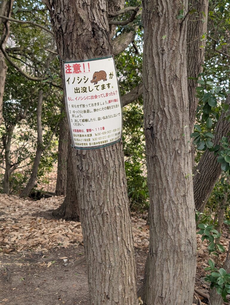 沿路的樹上不時有提醒會有山豬出沒的警告標語。