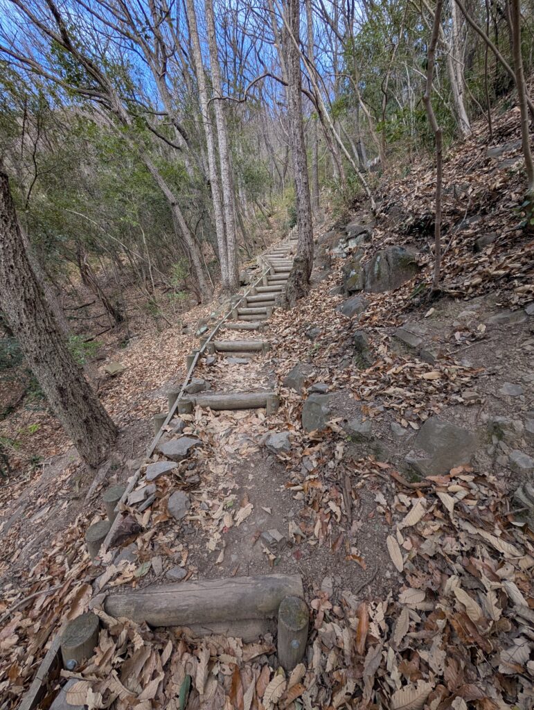 吃完後再往下走右轉走了一段平路之後又開始爬坡,還沒到登山口已經快喘死自己,不只穿著最長的長裙還穿著厚重的羽絨,提著超大的手提包,真的是寸步難行。