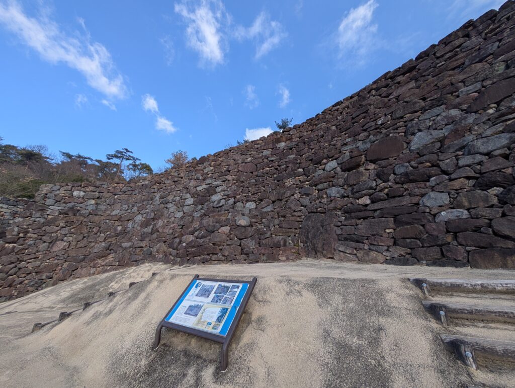快走到城堡遺跡時,一邊拉著裙擺一邊走得痛苦。
