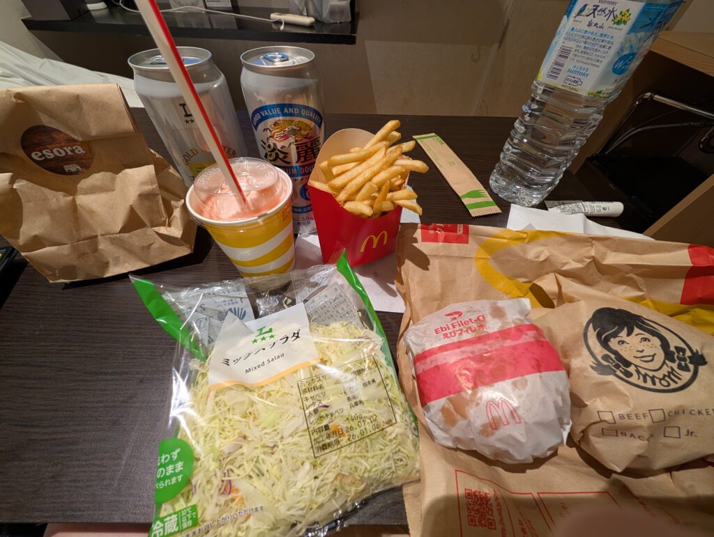 最後在大阪的晚餐,吃了溫蒂跟麥當勞,還喝了兩瓶啤酒,還有冷掉也好吃的雞蛋糕。