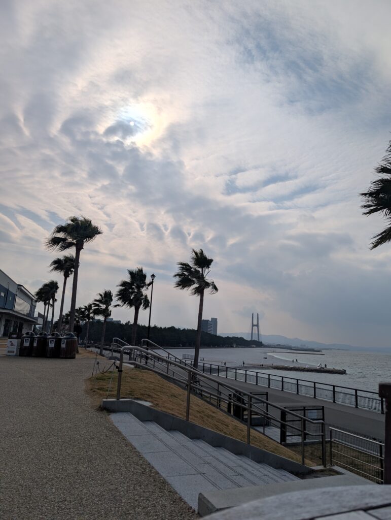 一個人快速的逛一下outlet看了看價格跟商店,吃一份麥當勞就提著咖啡坐在海邊,剛好鬼兒傳了太鼓橋的照。