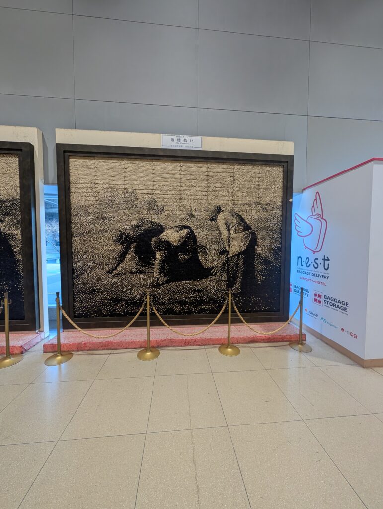 出來時才發現旁邊放著兩幅名畫用著車票做成的。