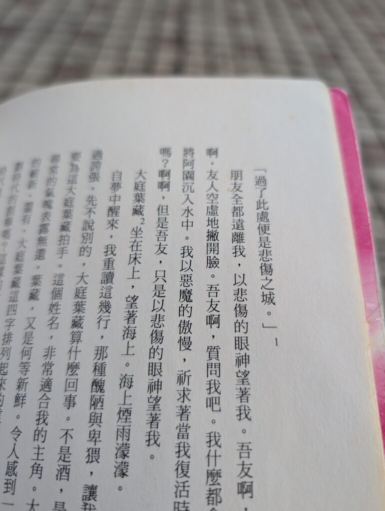 我已多久沒再翻閱太宰治?住在林雙家裡時,我將書櫃上的村上龍補齊了大半,村上春樹也補上了一本,原以為他想走向開放式關係,於是買了許多類似思想的書,但其實他不看。