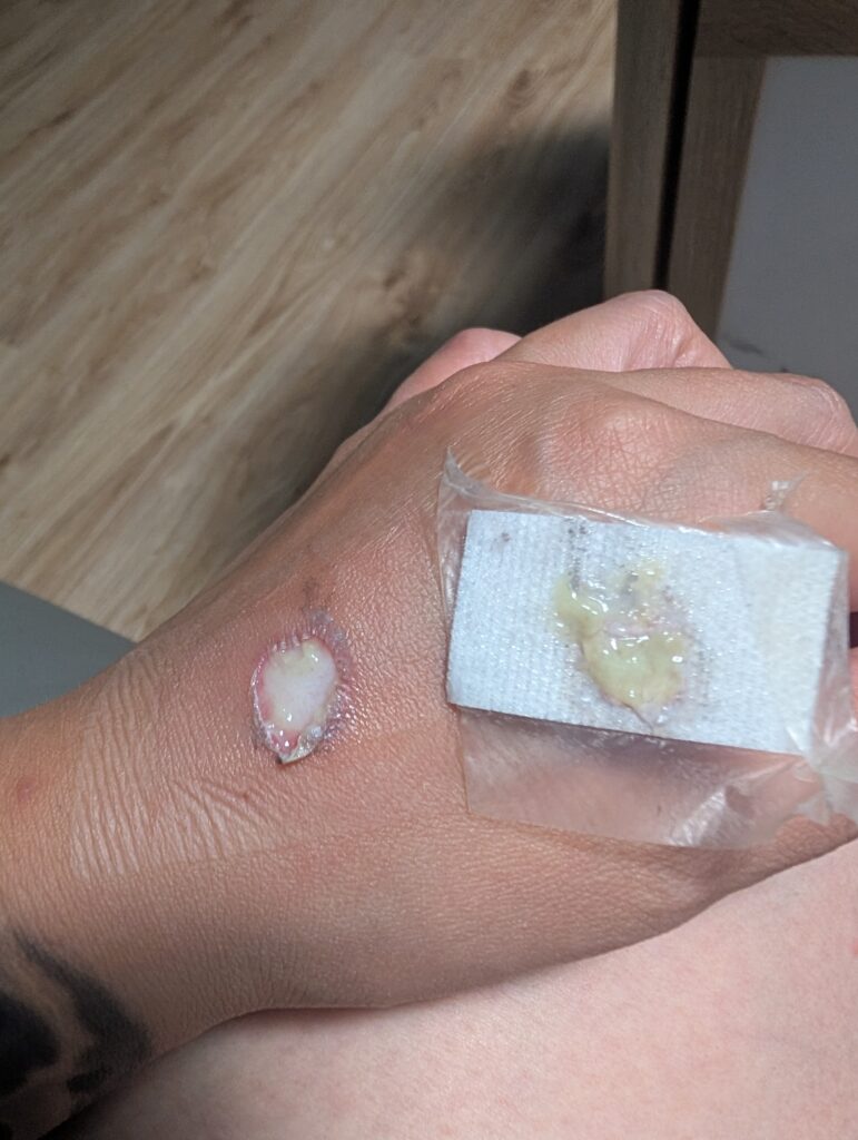 好巧不巧的幾乎快三十年後的那天,烙上的位置與近三十年前的位置成了一雙眼睛的模樣,好好地看著我自己吧,我左手上的戰後亡靈們在我屍體上不斷跳舞吧,為我慶祝吧。